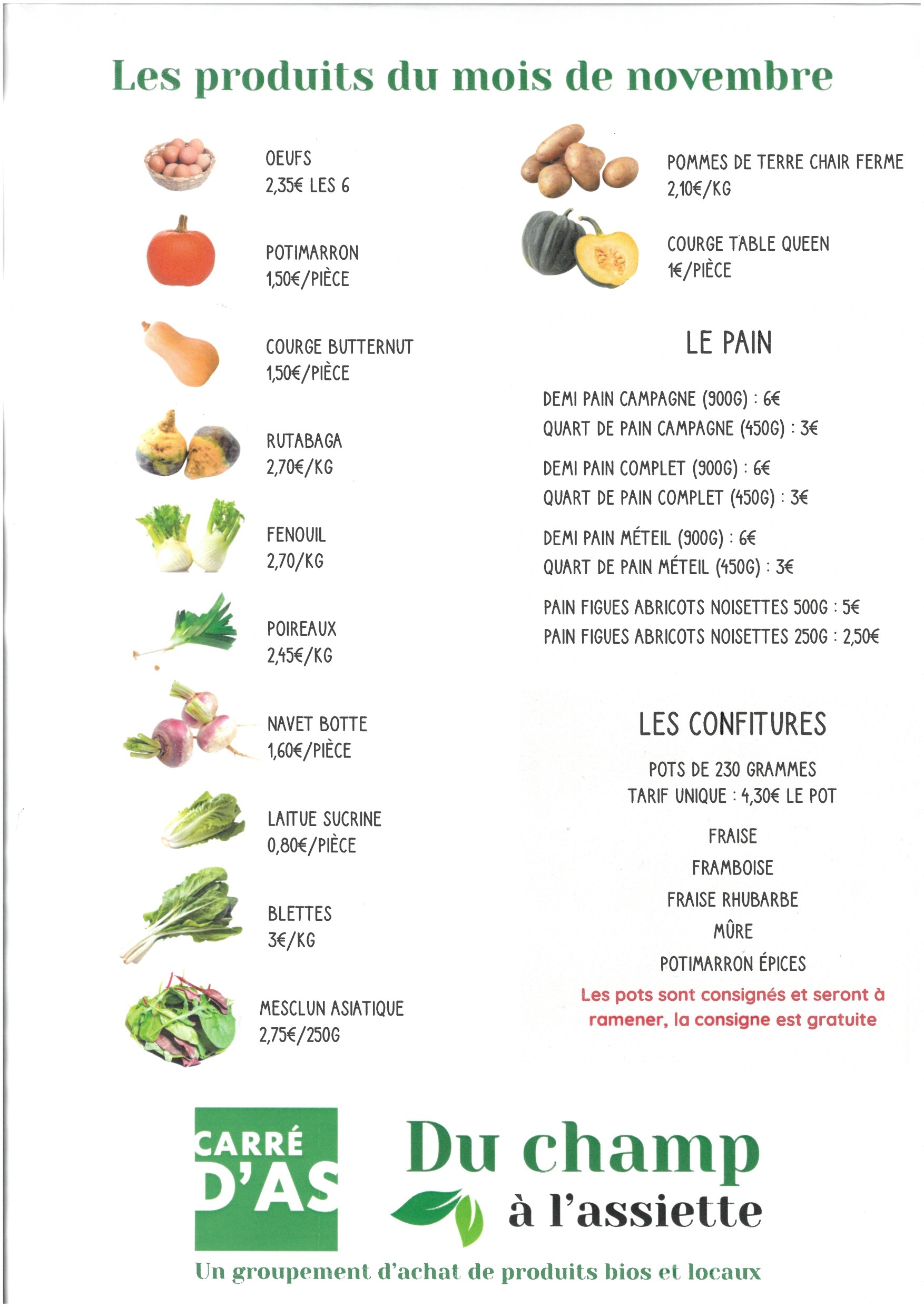 Novembre : Du jeudi 6 au jeudi 13 : commande