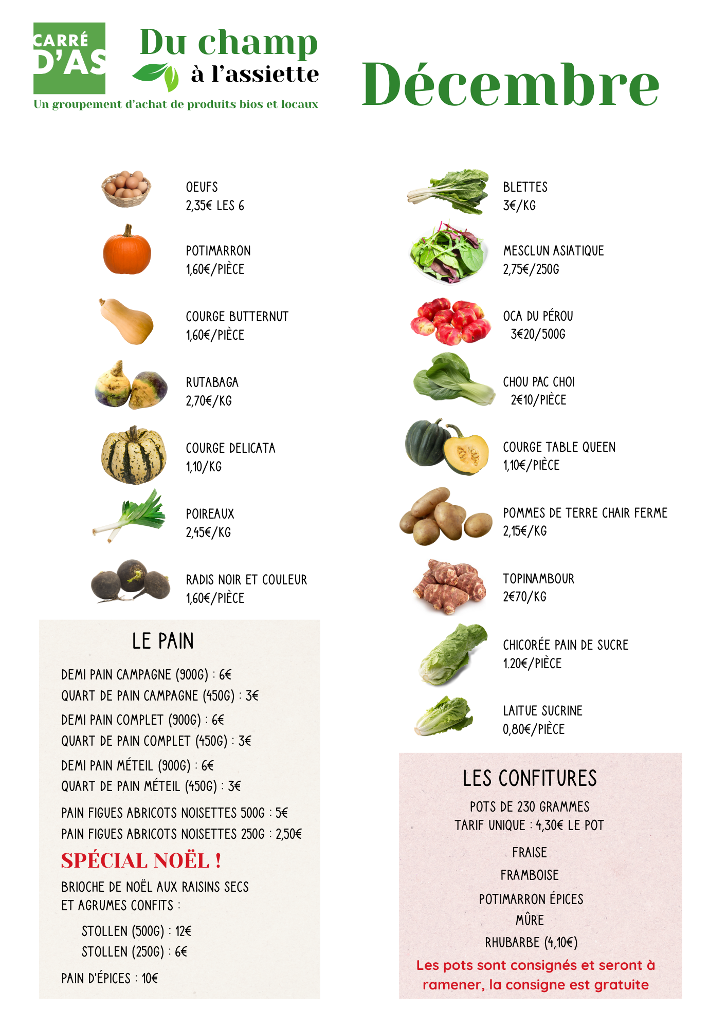 Décembre : Du lundi 8 au jeudi 11 : commande